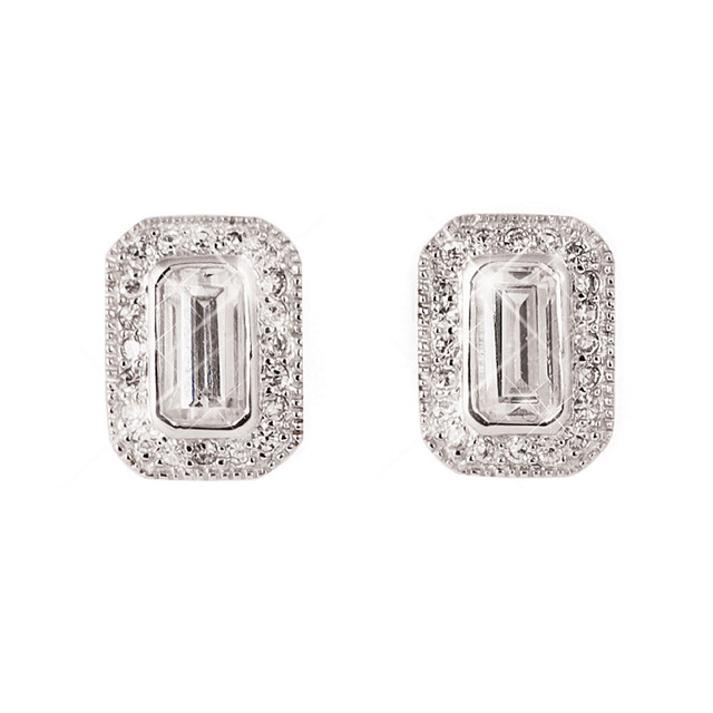Tipperary Crystal Silver Earrings White Stone Emerald Cut