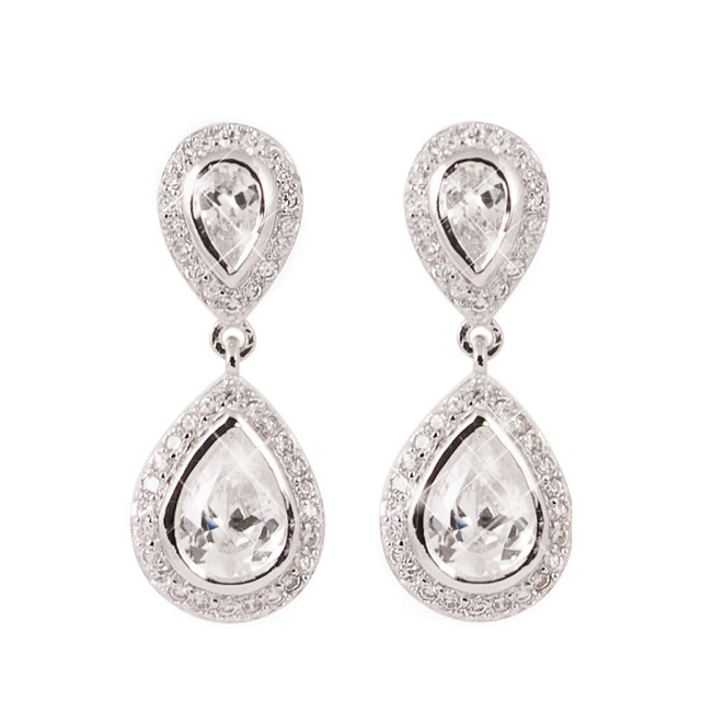 Tipperary Crystal Silver Earrings All White Pear Shape