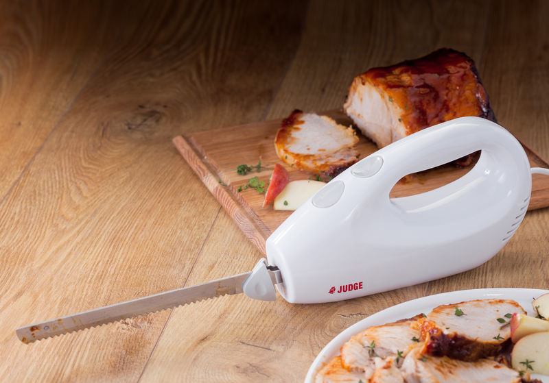 Serrated Universal Blade – Detachable blades carve meat, slice bread and more.