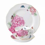 The friendship collection by Miranda Kerr is a delightfully beautiful collection of fine bone china teaware inspired by miracles love for peonies and butterflies. The white background provides the perfect canvas for blooms and butterflies to really stand out.