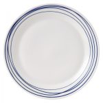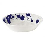 Glossy white porcelain has been decorated with unstructured, sleek lines in a natural blue and white colour palette for a fun and stylish appearance.