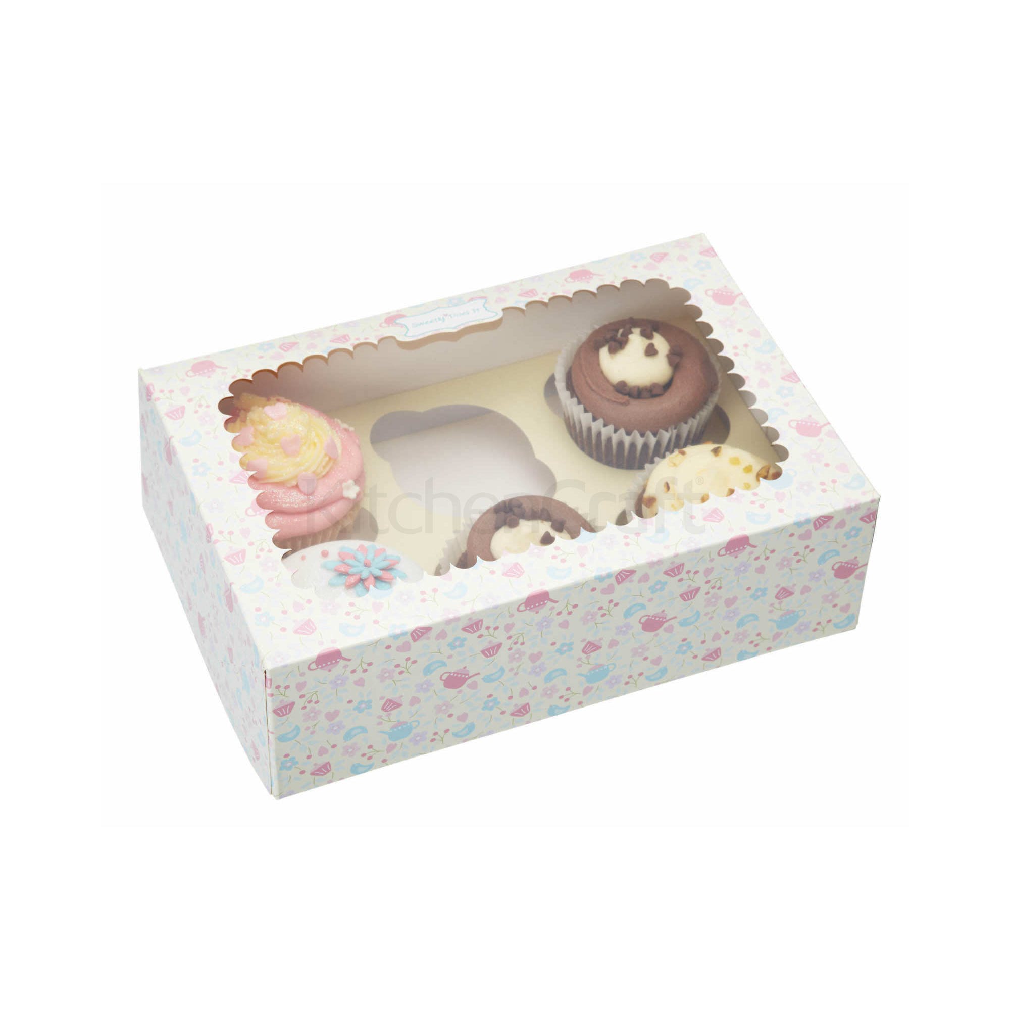 An easy and ever so decorative way in presenting and transporting your individual cupcakes, fairy cakes or muffins. The box features an insert to hold six cakes securely in place and the large acetate window allows to view its contents.