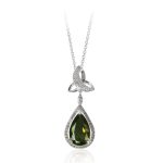 Celebrating Love, Loyalty & Friendship this Heart-shaped Claddagh Pendant shimmers. An emerald green heart-shaped stone is set at the centre and Adorned onto a Shimmering Crown with 3 Green Crystal Stone accents.