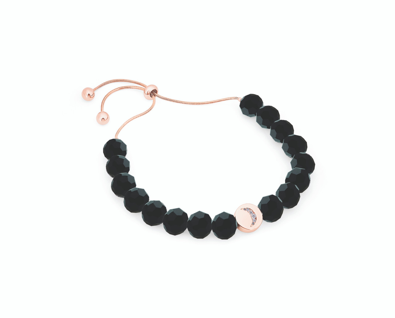 Rose Gold Moon & Black Beads Bracelet